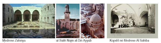 Dinastia Ayyubid erdhi në pushtet nën udhëheqjen e Salah al-Din (r. 1169–93), i njohur si Saladini. Arkitektura Ejubide shfaq një vazhdimësi midis dy traditash:  Fatimide të vonë dhe Memluke të hershme. Ejubidët lanë një traditë mbresëlënëse të arkitekturës ushtarake, e ndërtuar kryesisht në përgjigje të luftës së tyre me Kryqtarët. Një numër fortesash të ndërtuara fillimisht nga Kryqtarët u morën më vonë nga Ejubidët, të cilët i rinovuan dhe zgjeruan. Një zhvillim tjetër i kësaj periudhe janë pallatet e banimit të sundimtarëve brenda kështjellave të tyre.  Ndërkohë, krijimi i medreseve, institucioneve të larta të mësimit fetar, të tilla si Zahiriya (1219) në Alepo dhe ai i al-Salih Najm al-Din Ayyub (1243) në Kajro, ilustrojnë interesin e Ayubitëve për arsimin. Në këtë periudhë një rol të rëndësisëhm kanë luajtur dhe gratë, psh. Medreseja Al Sahiba në Damask (1233) u ndërtua nga Rabia Khatun, si dhe Mauzoleumi i al-Salih Najm al-Din Ayyub (1250), u porosit nga gruaja e tij Shajar al-Durr.  Në plan, medresetë Ayyubid zakonisht përbëhen nga një oborr i rrethuar nga dy deri në katër iëane, si dhe dhoma më të vogla për studentët dhe mësuesit. Me kalimin e kohës, plani me katër iëan u bë mbizotërues. Ejubidët gjithashtu futën një kombinim të mauzoleumit dhe medresesë drejt fundit të sundimit të tyre.