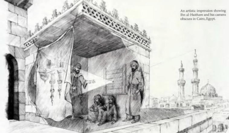 Duke përdorur një dhomë të errët me një vrimë në njërën anë dhe një fletë të bardhë në anën tjetër, ai siguroi dëshmi për teorinë e tij. Drita erdhi përmes vrimës dhe paraqiste një imazh të përmbysur të objekteve jashtë dhomës në pozicion të kundërt. Ai e quajti këtë “qamara”. Ishte kamera e parë, kamera obscura.