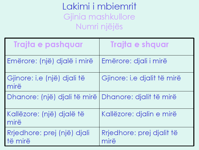 Nyjet tregojnë se mbiemrat janë në rasa të ndryshme.