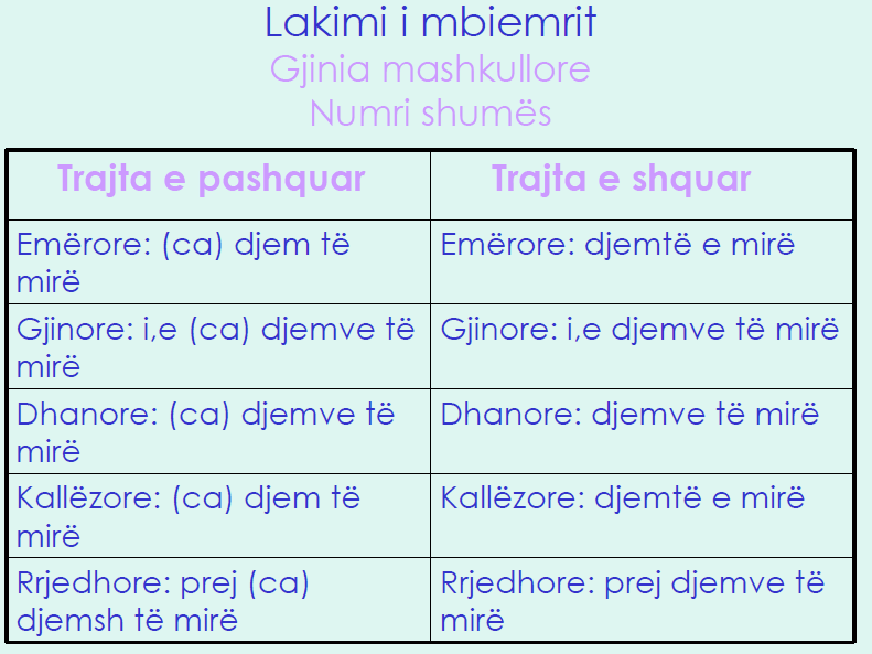 •Shumësi i mbiemrave të nyjshëm të gjinisë mashkullore formohet: