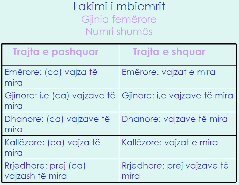 •Shumësi i mbiemrave të nyjshëm të gjinisë femërore formohet:
